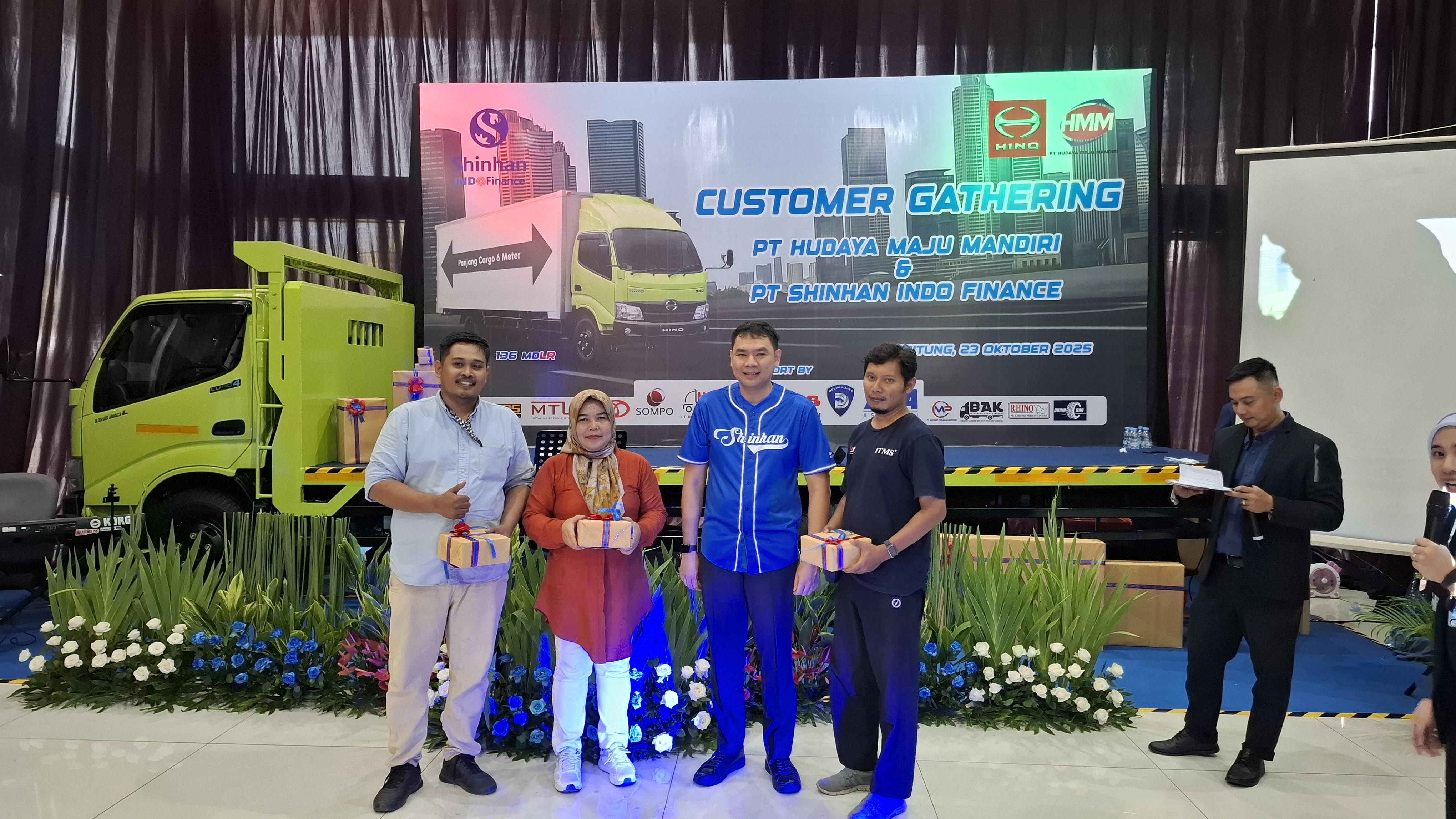 Shinhan Indo Finance (SIF) menjadi mitra utama dalam acara Customer Gathering Hino yang diselenggarakan oleh PT Hudaya Maju Mandiri (HMM) pada tanggal 23 Oktober 2025 di dealer HMM Cibitung, Kabupaten Bekasi.